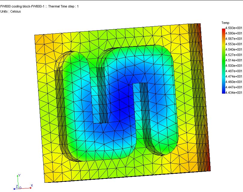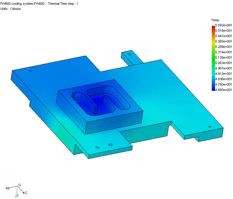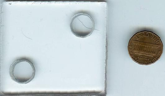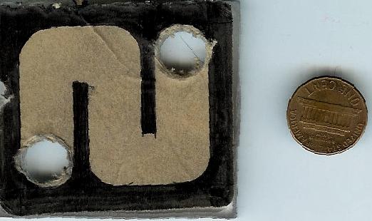 Modified Heatsink - bottom w/ cooling block (red spots are CPU locations) |