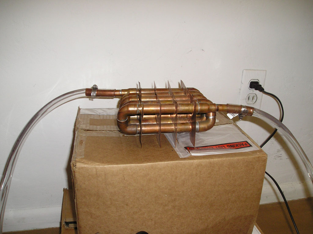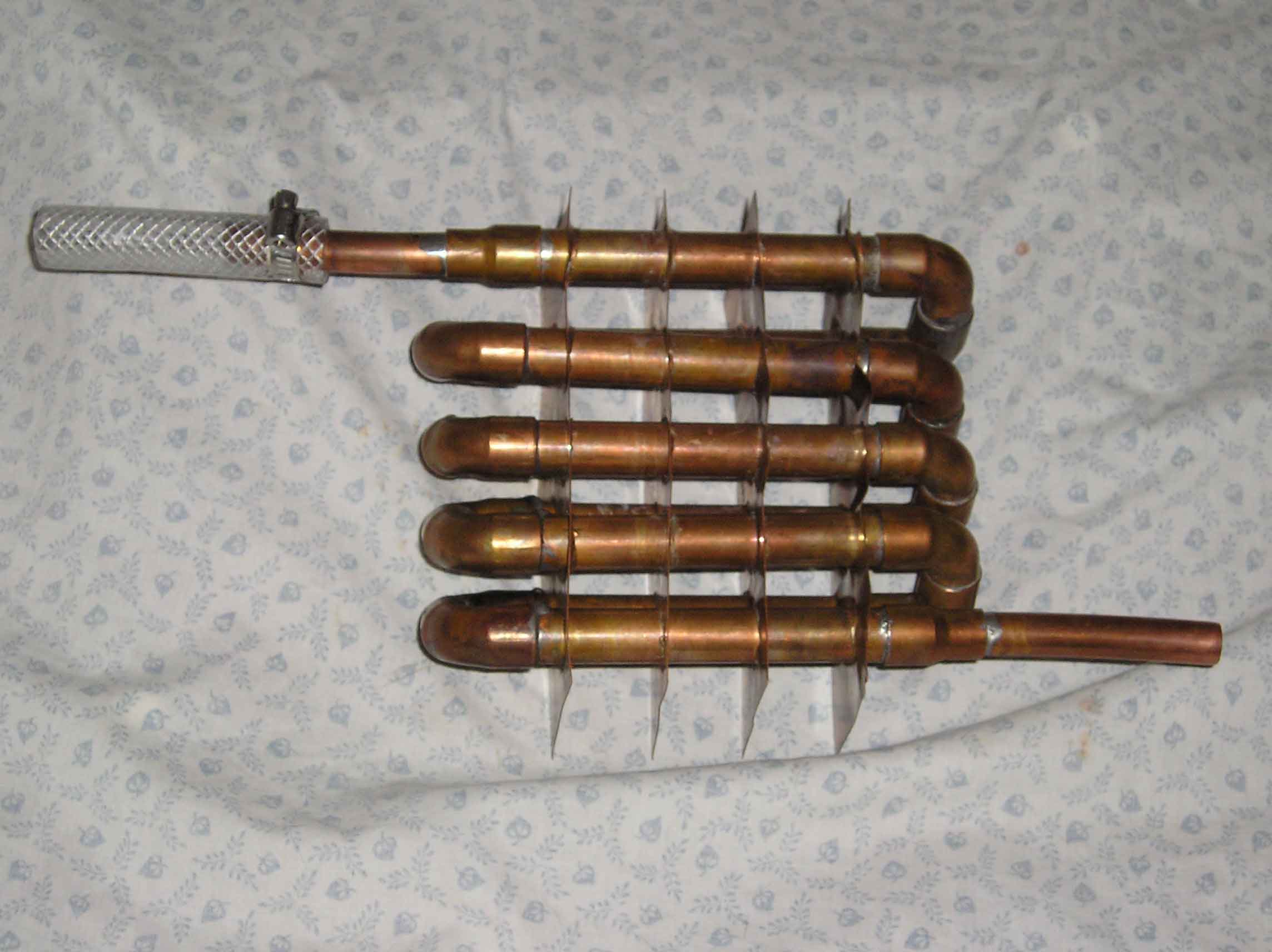 this is the actual radiator that was made from 1/2" copper pipe. All the fittings were soldered on and then leak tested at 40 PSI. |